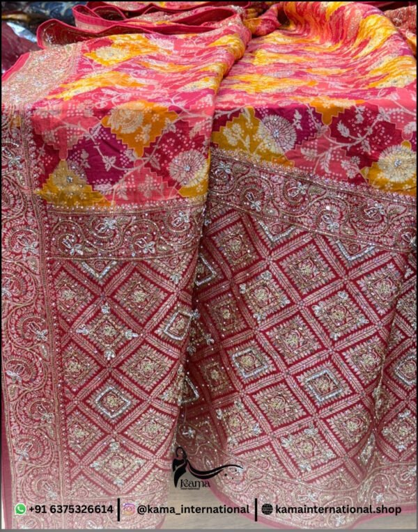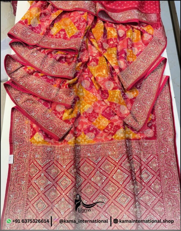 A perfect blend of traditional patterns and luxurious craftsmanship… ideal for weddings, festive occasions, and special celebrations… this saree offers a vibrant and graceful look with its rich color and intricate detailing…