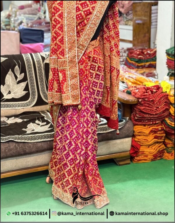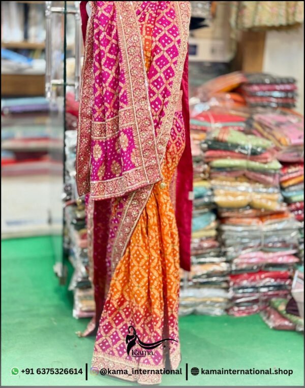 A perfect blend of vibrant colors and traditional craftsmanship… ideal for weddings, festive occasions, and celebrations… this saree offers a graceful drape with a luxurious and eye-catching appeal…