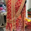 Beautiful pure Upada silk saree… designed with traditional hand Bandhej pattern and enhanced with multi dye shaded effect… enriched with heavy handwork all over the saree for a rich and festive look…